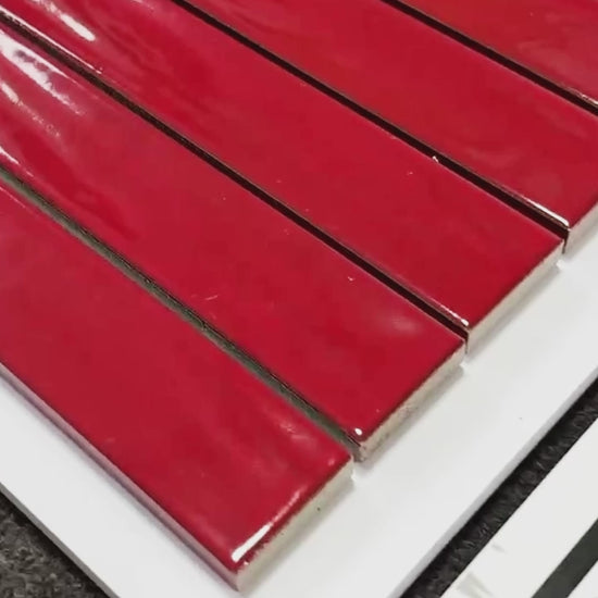 Handmade Kiln-fired Brick 40x250mm - Per Square Meter (100pcs) - Deep Crimson Red Finish N42506