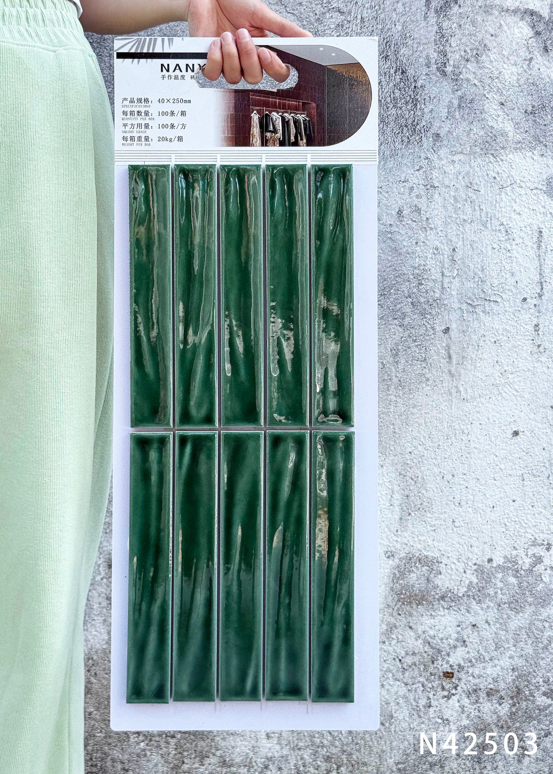 Handmade Kiln-fired Brick 40x250mm - Per Square Meter (100pcs) - Deep Forest Green N42503