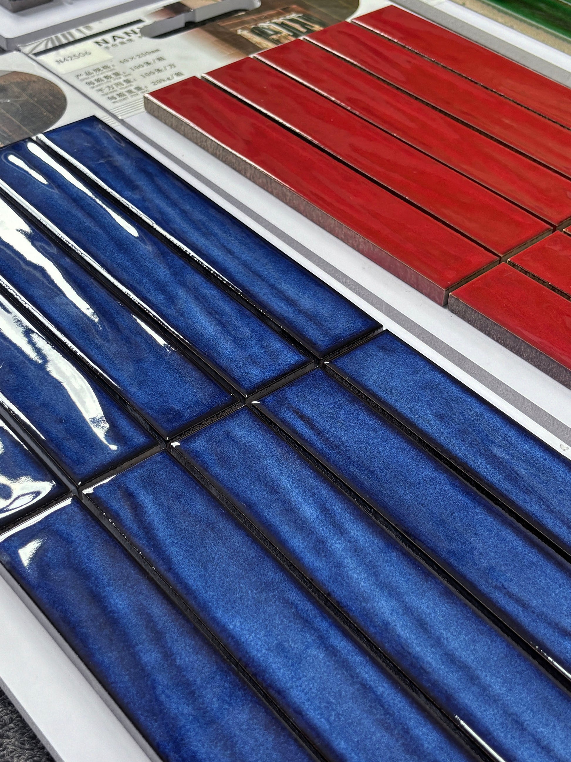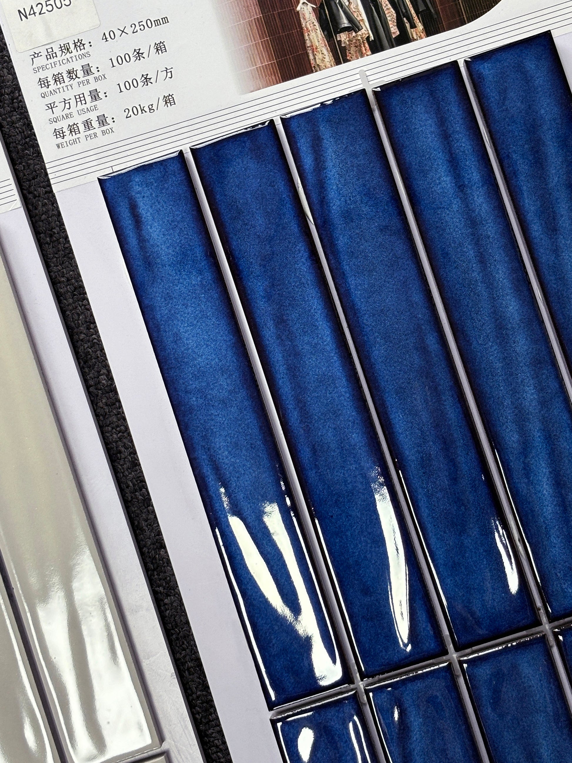 Handmade Kiln-fired Brick 40x250mm - Per Square Meter (100pcs) - Deep Ocean Blue Finish N42505