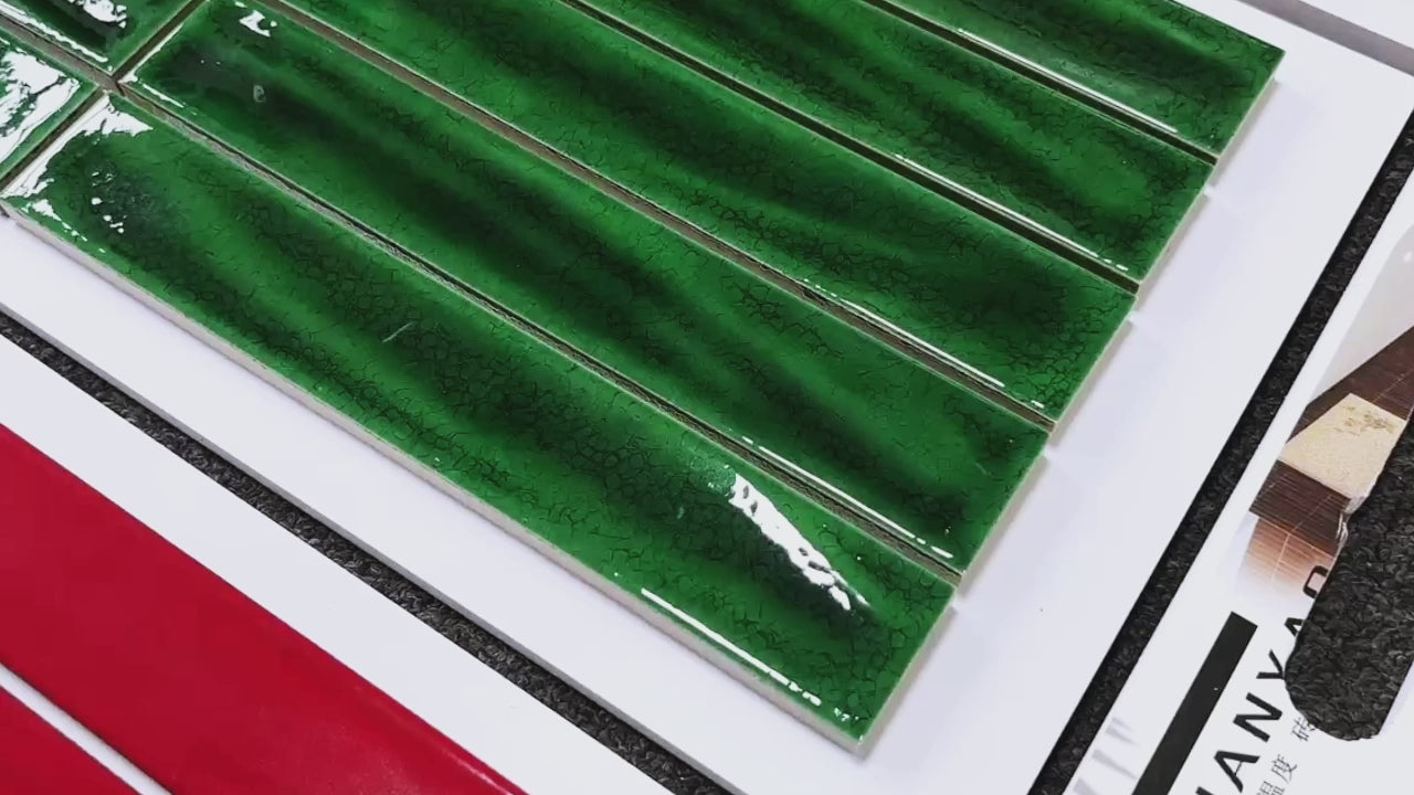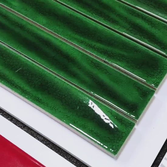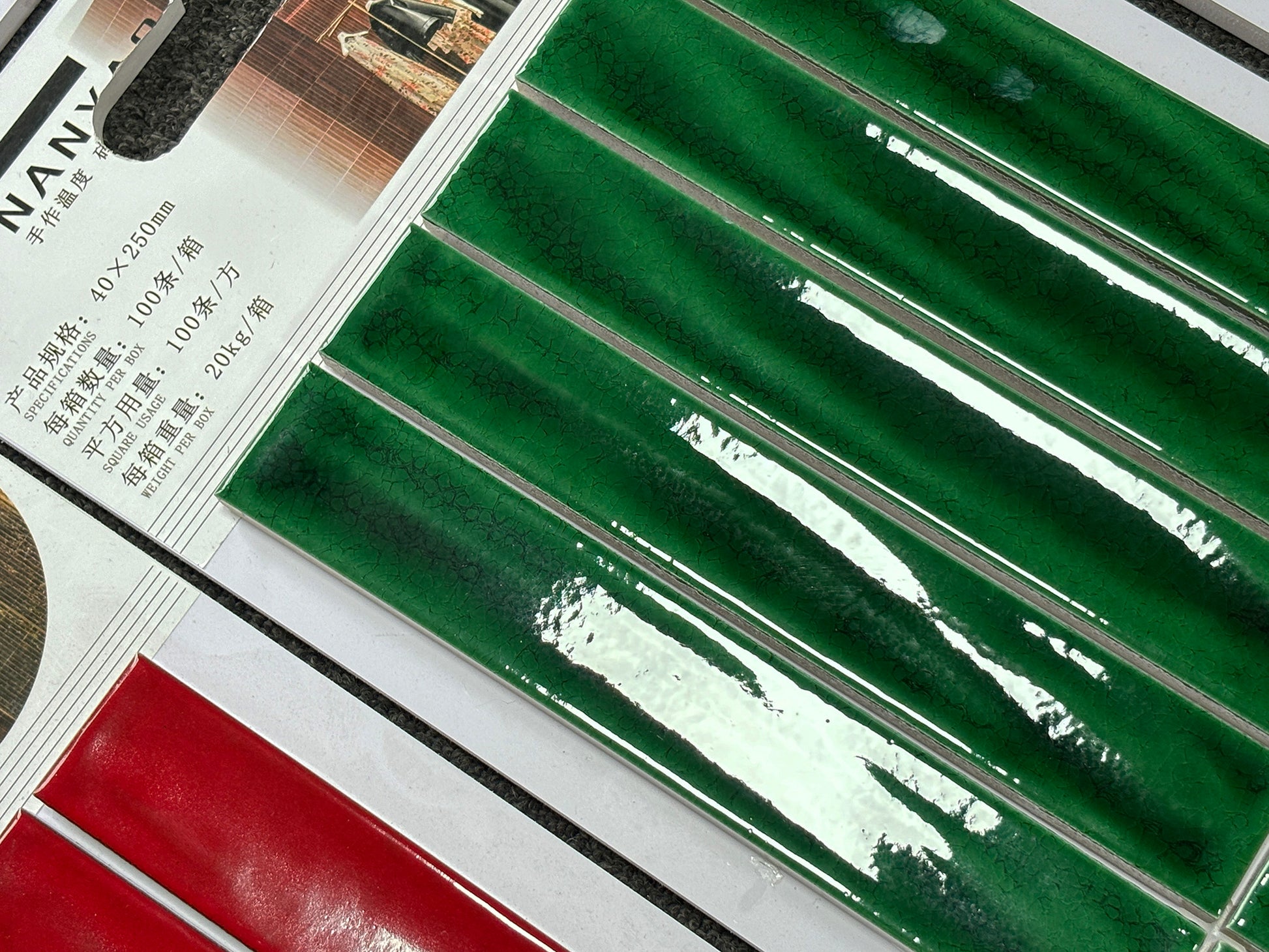 Handmade Kiln-fired Brick 40x250mm - Per Square Meter (100pcs) - Jade Green Crackle Finish N42507