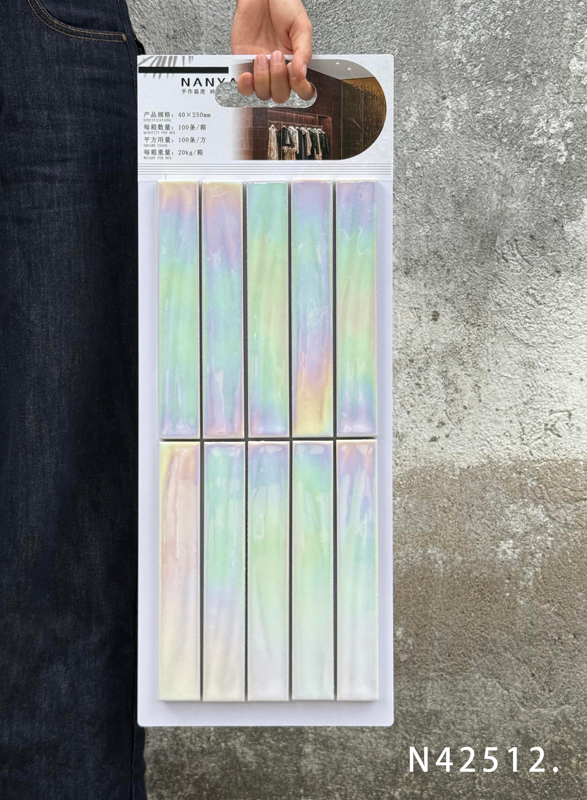 Handmade Kiln-fired Brick 40x250mm - Per Square Meter (100pcs)- Pearl Iridescent Finish N4512/